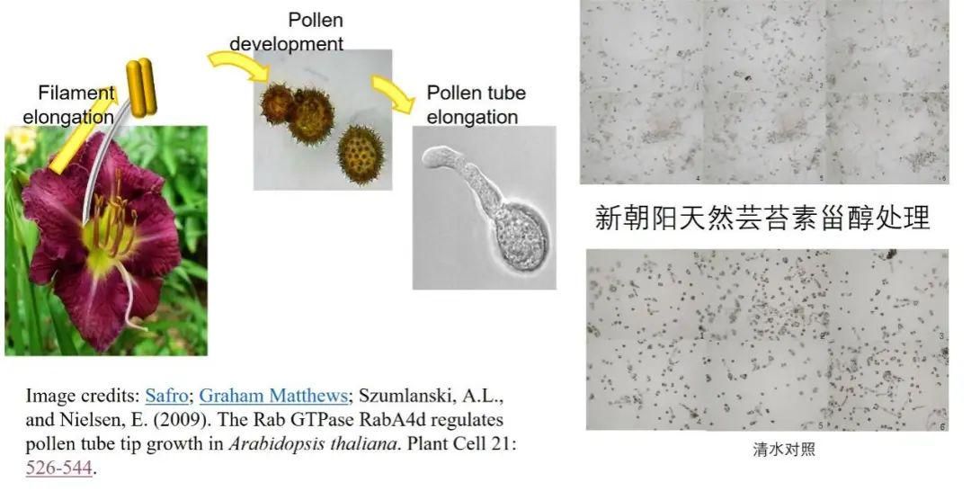 正確施用天然蕓苔素能夠促進花粉管伸長,提高花粉的發(fā)芽率,有利于植物的受精,從而提高結實率和座果率。同時,天然蕓苔素還能促進光合作用,提高葉綠素含量,促進花器正常發(fā)育,減少落花落果。經研究發(fā)現(xiàn),柑橘花期使用天然蕓苔素碩豐481?,花粉萌發(fā)率提高明顯。因此,促花、保花保果時用天然蕓苔素碩豐481?原因在此。
